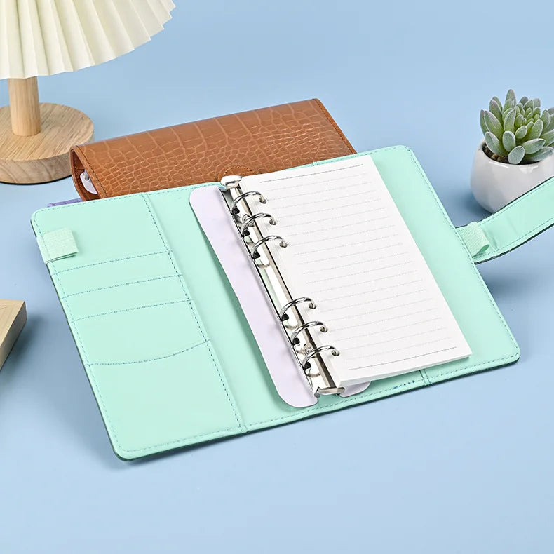 A5 A6 A7 Crocodile Color 6 Ring Binder PU Clip-on Notebook Leather Loose Leaf Notebook Cover Notebooks Journal Stationery