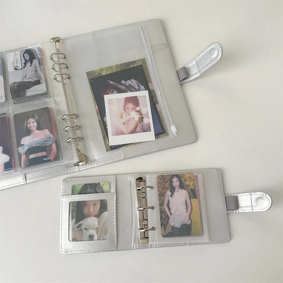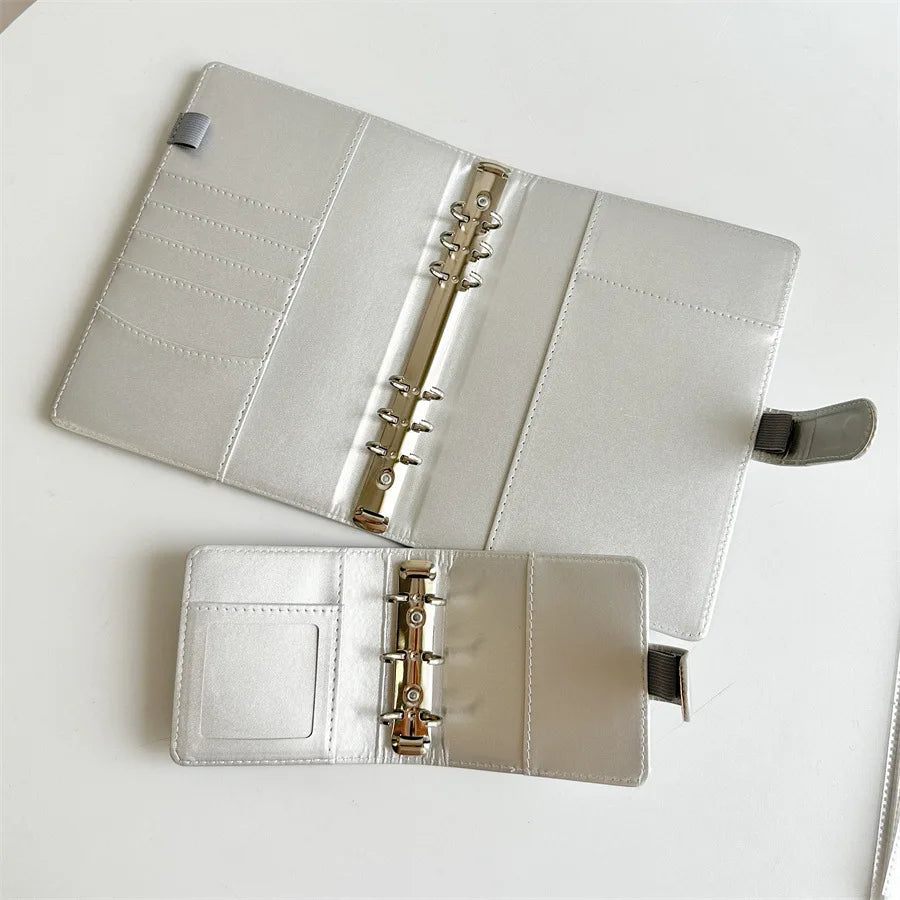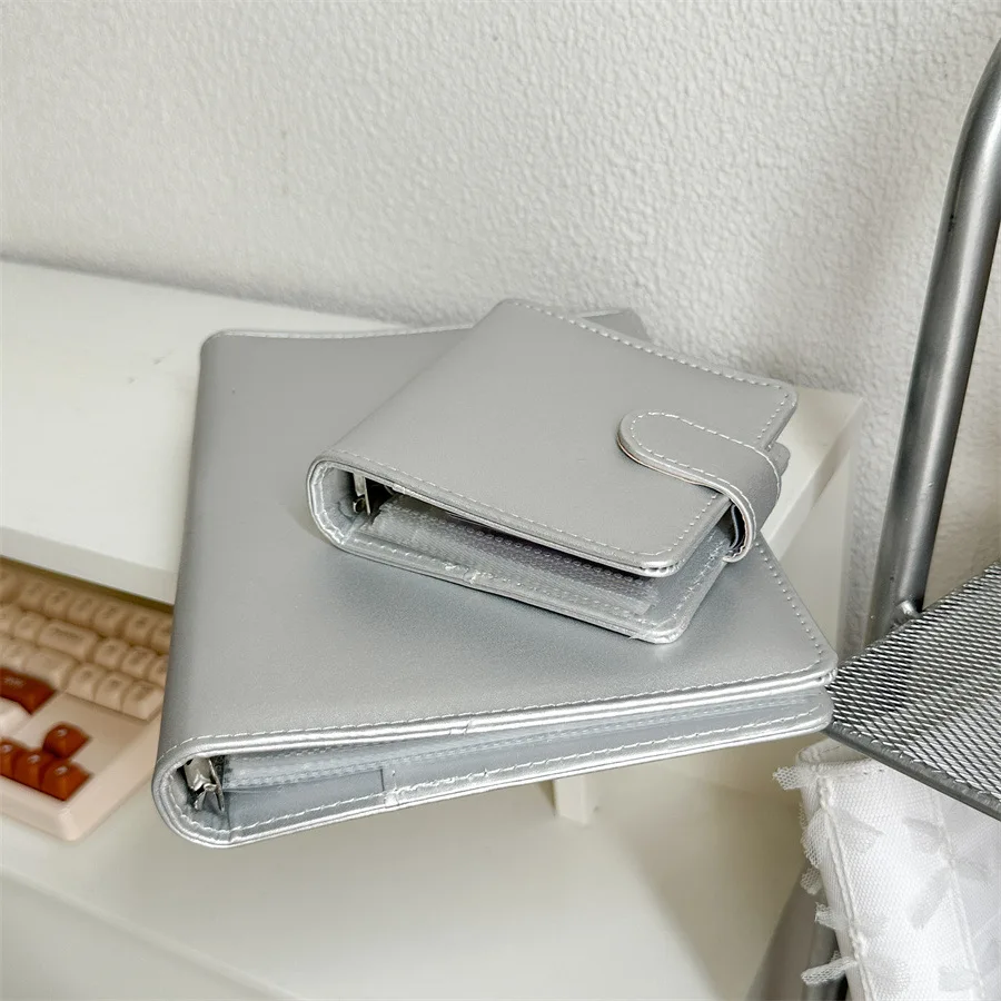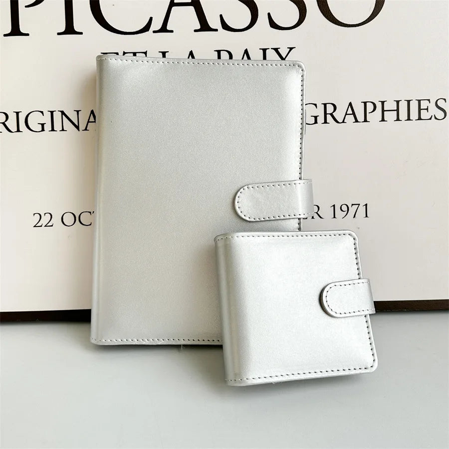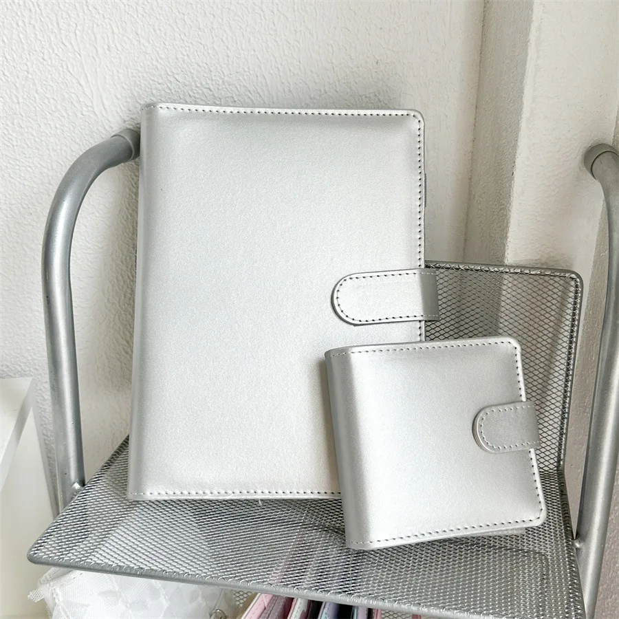 A5 A8 Instagram Silver PU Magnetic Buckle Loose Leaf PU DIY Binder Notebook Cover Diary Agenda Planning Paper Cover