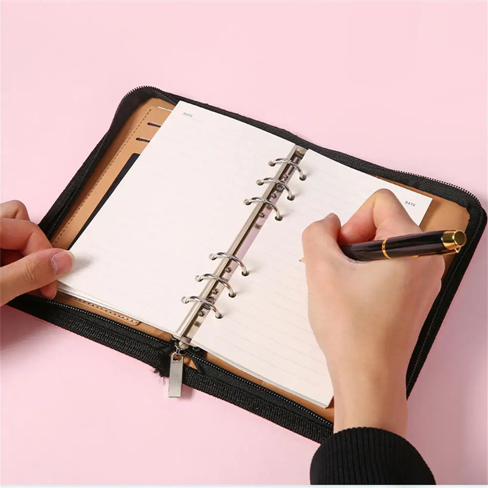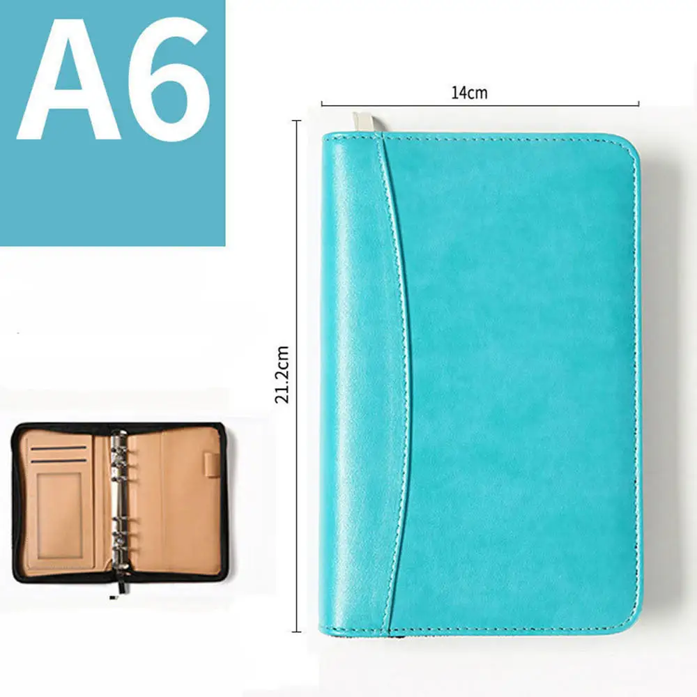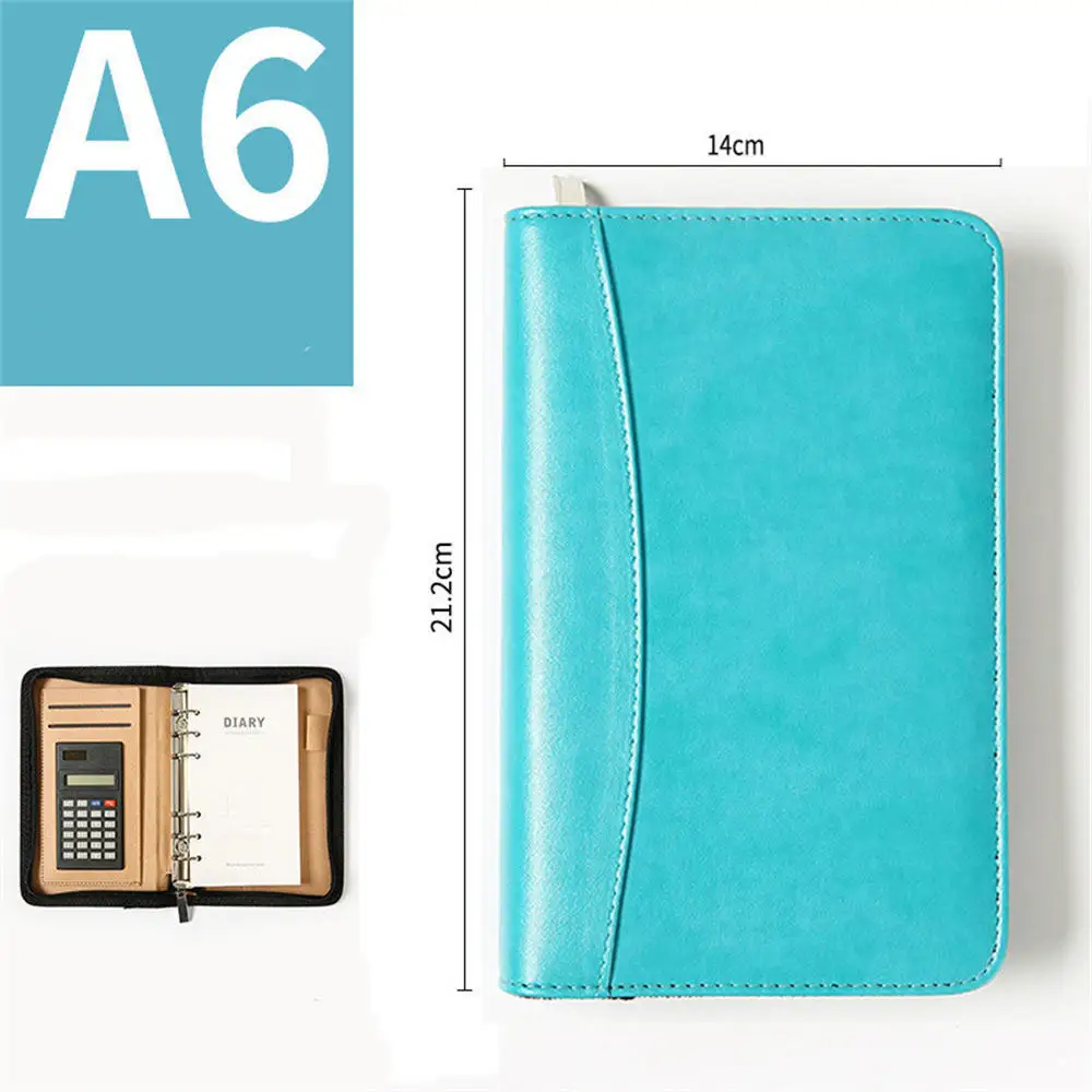 A6 PU Leather Business Notebook With Zipper Loose Leaf Folder Diary Binder Notebook With Calculator Journal Book Notepad